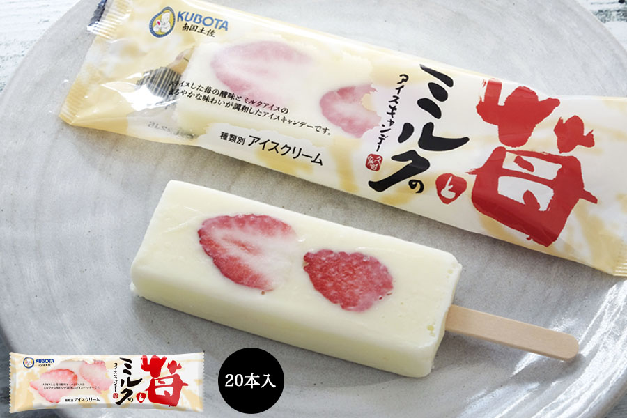 まろやかなミルクアイスと旬採れ国産生苺のプレミアムアイスキャンデー。 旬の間に収穫された国産生苺を使用。へた取り、洗浄、スライスなど、手作業でひとつひとつ丁寧に加工した苺をミルクアイスキャンデーに貼り付けました。甘酸っぱい苺の美味しさと、まろやかなミルクアイスがベストマッチしたこだわりのアイスキャンデーです。 旬の国産生苺を贅沢にまるごと使用したこだわりのアイスキャンデー。 旬の間に収穫した生苺は全て手作業で洗浄、へた取りを行います。 果汁・果肉をまるごと使用したアイスキャンデーは、まさに苺そのままの美味しさ。 添加物不使用なので、素材本来の香り・甘味をお楽しみいただけます。ミルク感あふれるキャンデーにスライス苺を貼り付けた「苺とミルクのアイスキャンデー」は久保田のアイスキャンデー1番人気。まろやかなミルクアイスとフレッシュな苺のハーモニーをお楽しみ頂けます。 苺とミルクのアイスキャンデー(20本入/サイズ3) ツイートする シェアする 販売価格: 4,320円(税込み)※送料別 会員価格 (税込み) 通常価格 (税込み) 在庫 85 商品コード 2156 JANコード 4905919112041 この商品のケースサイズは 3 です 数量 - + カートに入れる カテゴリー アイスキャンデー メーカー 久保田食品 ギフトセット・ケースサイズ10の商品に関しまして、1回のご注文につき10セット/10ケースまでとさせていただいております。それ以上ご注文頂いた場合送料計算に不具合が生じるため、改めて当ショップからご連絡させて頂きます。 ケース入数:20本入種類別:アイスクリーム無脂乳固形分:9.5% 乳脂肪分:8.0%原材料名:牛乳(生乳(北海道産))、乳製品、砂糖、苺内容量:80ml栄養成分表示(1個あたり):熱量 152 kcal | たんぱく質 3.00 g | 脂質 6.70 g |炭水化物 20.70 g | 食塩相当量 0.10 gアレルギー成分:乳成分